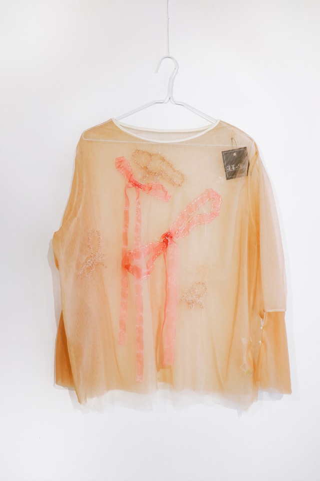 \ りぼんのシアーチュールトップ / ▶店頭でも同時販売中 トレンドを抑えたレイヤードデザインでトレンド感のある1枚に さかもとさんの刺繍を施した一点物。 レイヤーの内と外に施された刺繍は立体的なリボンを 周りにはキラキラしたさかもとさん描いたリボンが刺繍されています。 ゆったりシルエットと柔らかなシアーチュール素材は キャミソールやタンクトップを合わせヘルシーな肌見せも。 ▲発送まで1週間程度いただきます。 サイズ / レディース FREE 肩幅:46cm、総丈:73cm、身幅:66cm、袖丈:56cm 本体 : ナイロン100% パイピング : ポリエステル100% ※商品画像は、光の当たり具合やパソコンなどの閲覧環境により、実際の色味と異なって見える場合がございます。予めご了承ください。 ※素材や編み方の性質上、引っ掛け、引っ掛かりが起きやすい性質をもっています。お取り扱いにはご注意ください。 ※直射日光や蛍光灯に長時間あたると変色したり、色褪せすることがありますのでご注意ください。