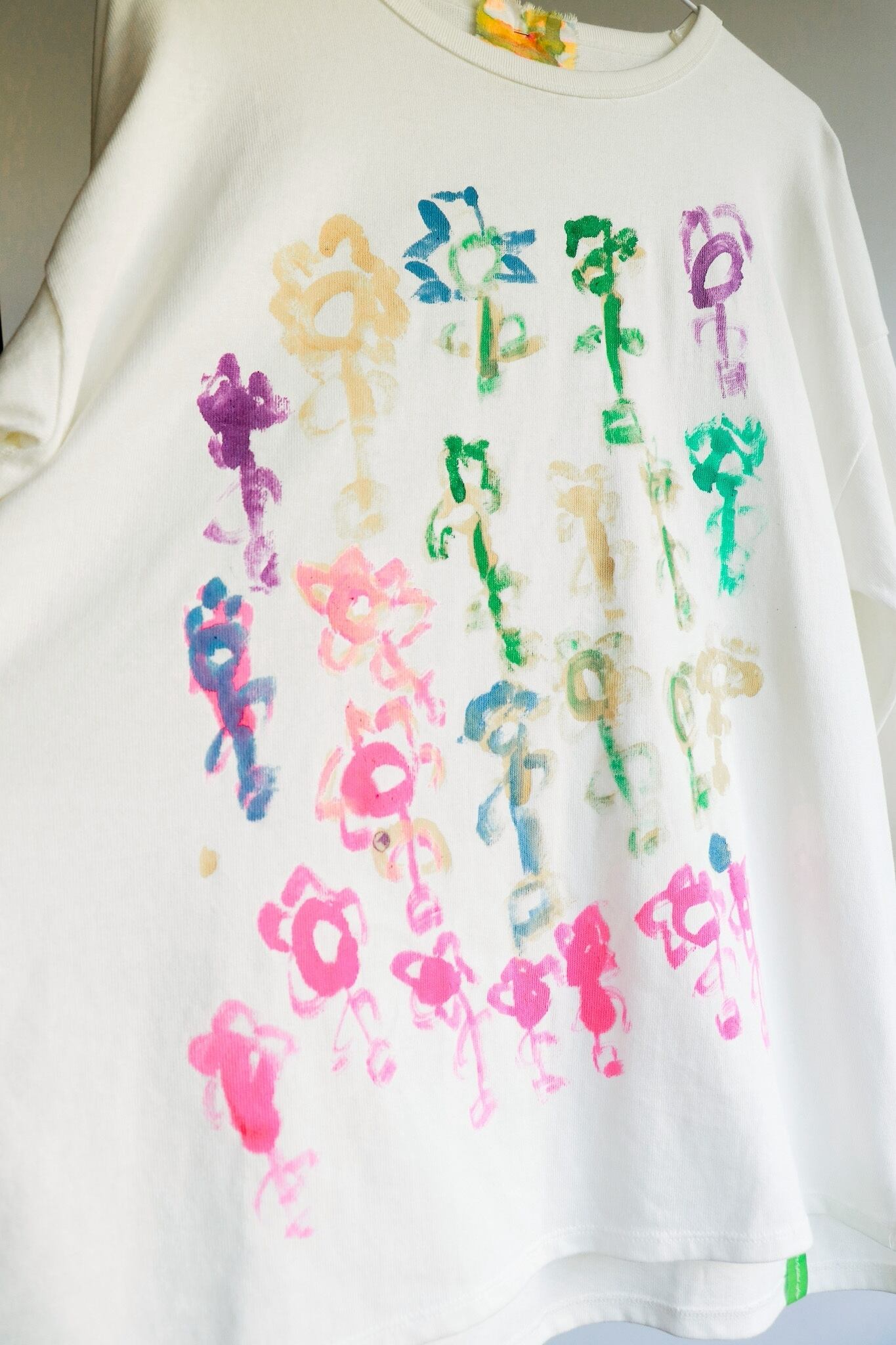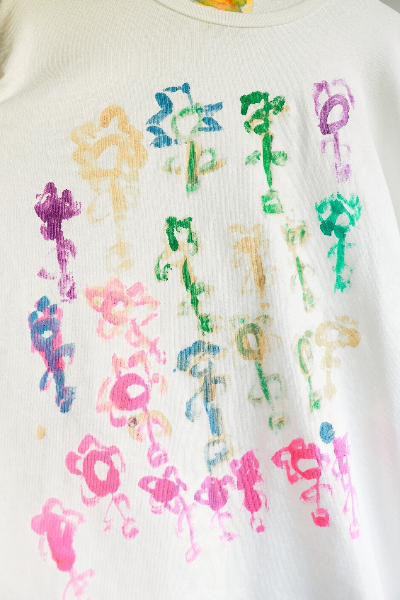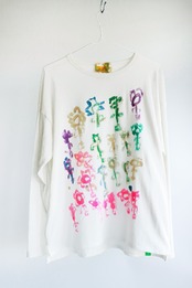 シンプルな白いロンTにカラフルな花を描いたキュートな作品。