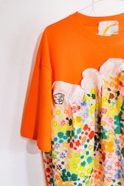 まこさんが直接描いたカラフルな花柄布をアートパーツとして大胆にあしらい