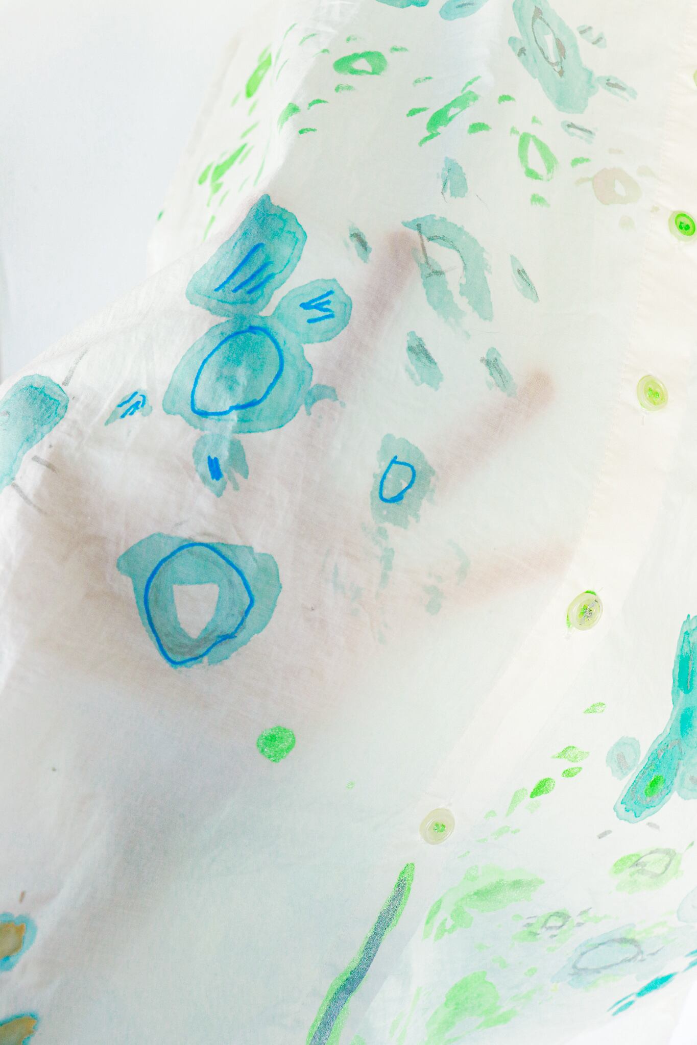 背中側にも模様が入っており、ボタンにも色付けしてあります。