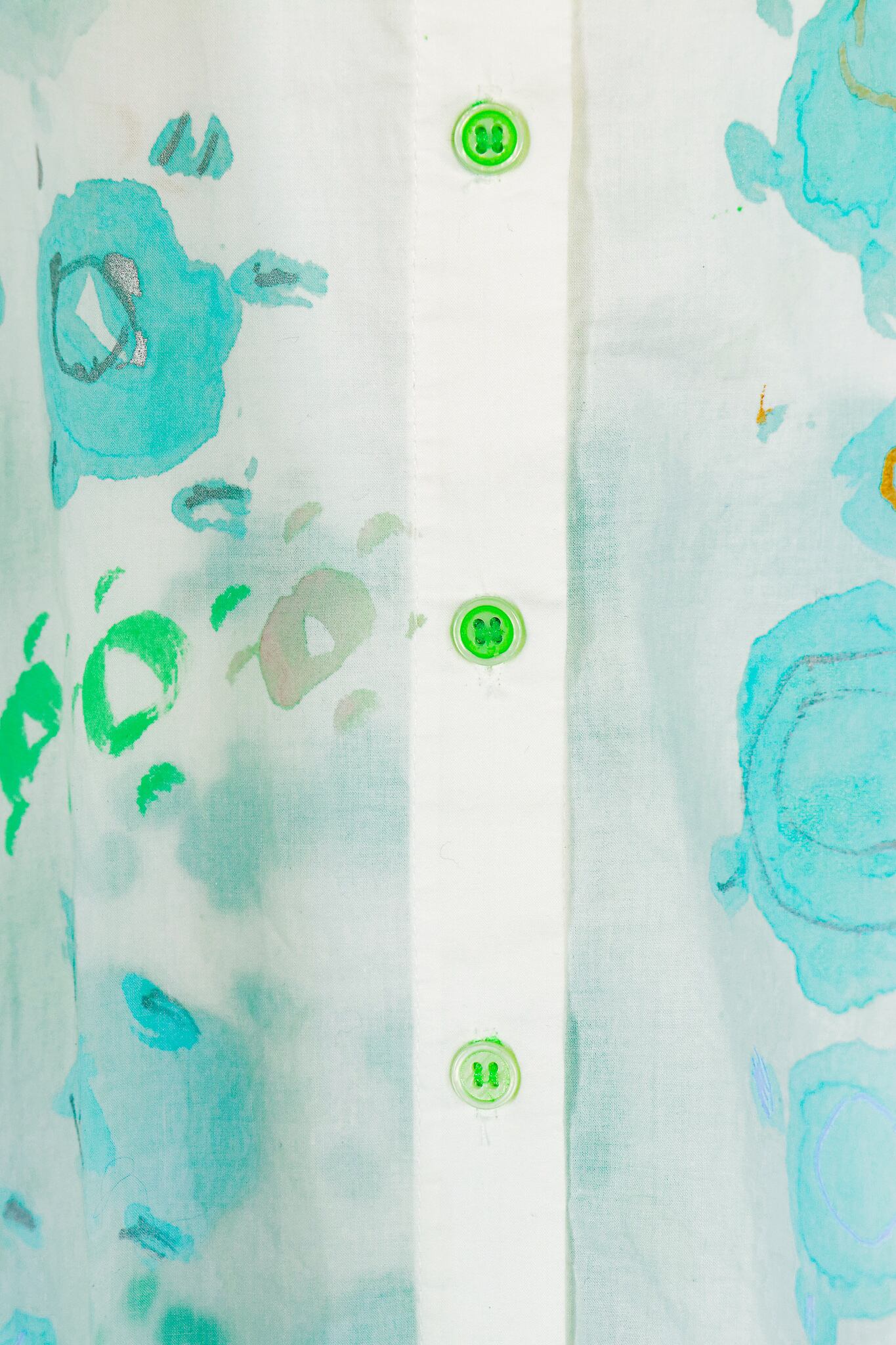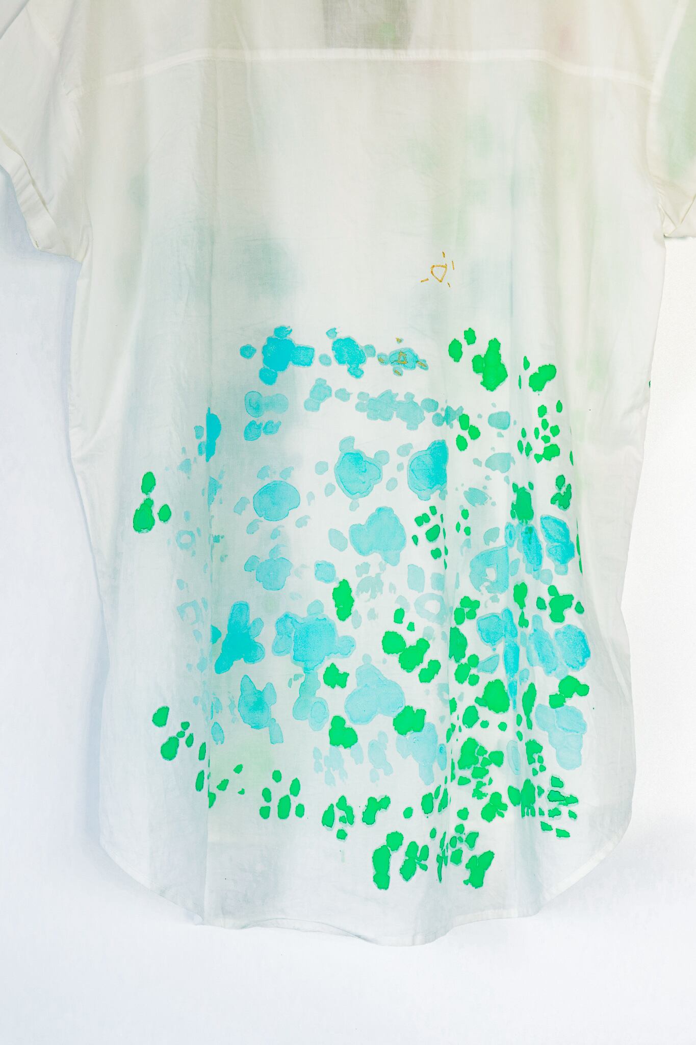 おひさまをモチーフに、淡い色使いで涼しげに仕上げた半袖シャツです。