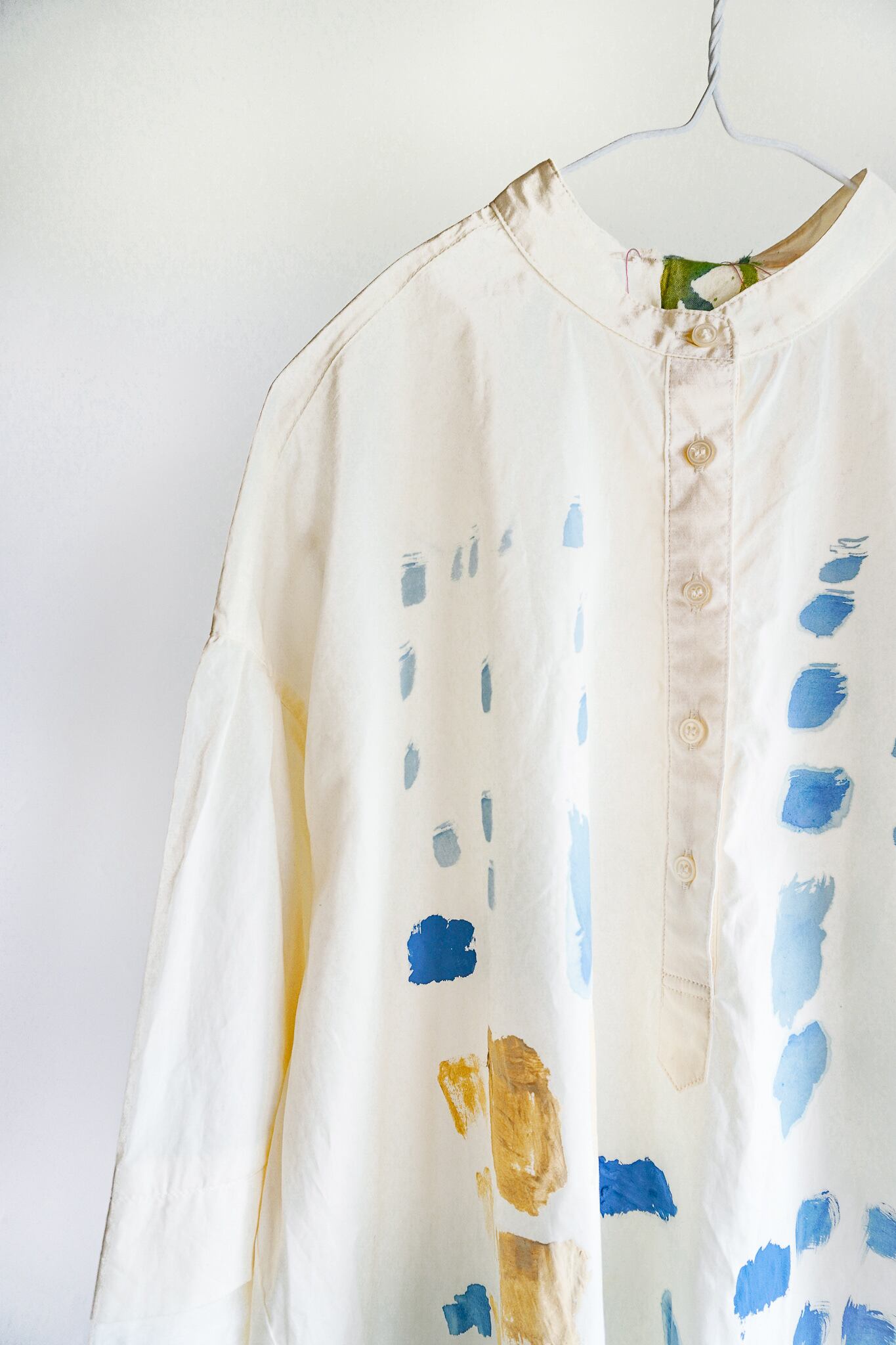 ボリューム感のある袖と背中のタックが美しいシルエット長袖ブラウス。